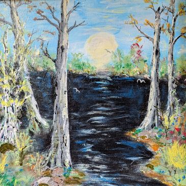 G.W. West is a visual artist from Clinton, NC. West draws inspiration from the world just beyond his back door — barns, rivers, and quiet country landscapes that reflect the beauty of rural life. Each painting invites viewers to pause and look closer, revealing a symbolic hidden fish tucked within the scene, a personal expression of the artist’s faith.